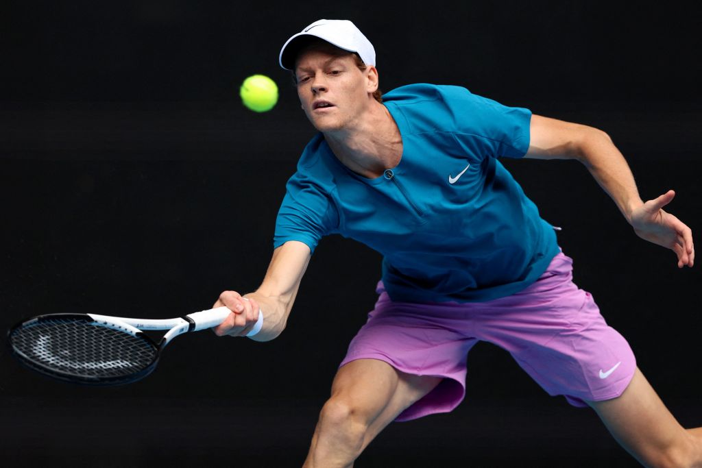 Jannik Sinner in blu e... rosa. I pantaloncini dell'azzurro non sono passati inosservati.