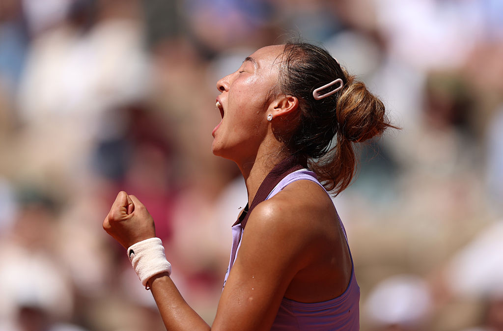 L'esultanza di Qinwen Zheng al Roland Garros (Getty Images)