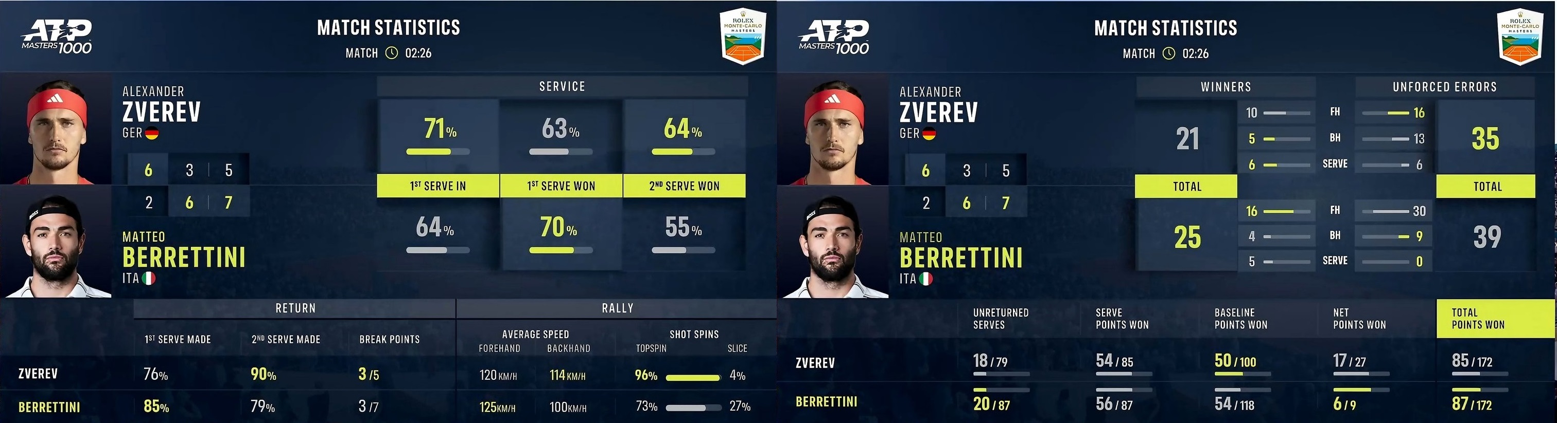 Il 28enne romano, n.34 ATP, dopo aver battuto in due set all’esordio l’argentino Navone, n.70 del ranking, promosso dalle qualificazioni, ha superato in rimonta per 26 63 75, dopo quasi due ore e mezza di lotta, il tedesco Alexander Zverev, n.2 del ranking e primo favorito del seeding, battuto solo per la terza volta (la seconda consecutiva) in nove confronti. Per Matteo è la quinta vittoria contro un top-five.