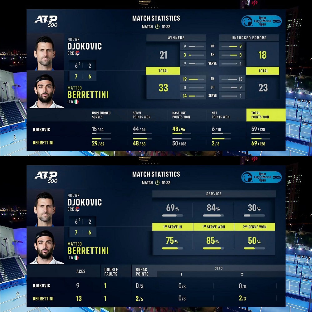 Matteo Berrettini claims a first career win over Djokovic to adavnce in Doha#QatarExxonMobilOpen pic.twitter.com/70uwAt3tBQ