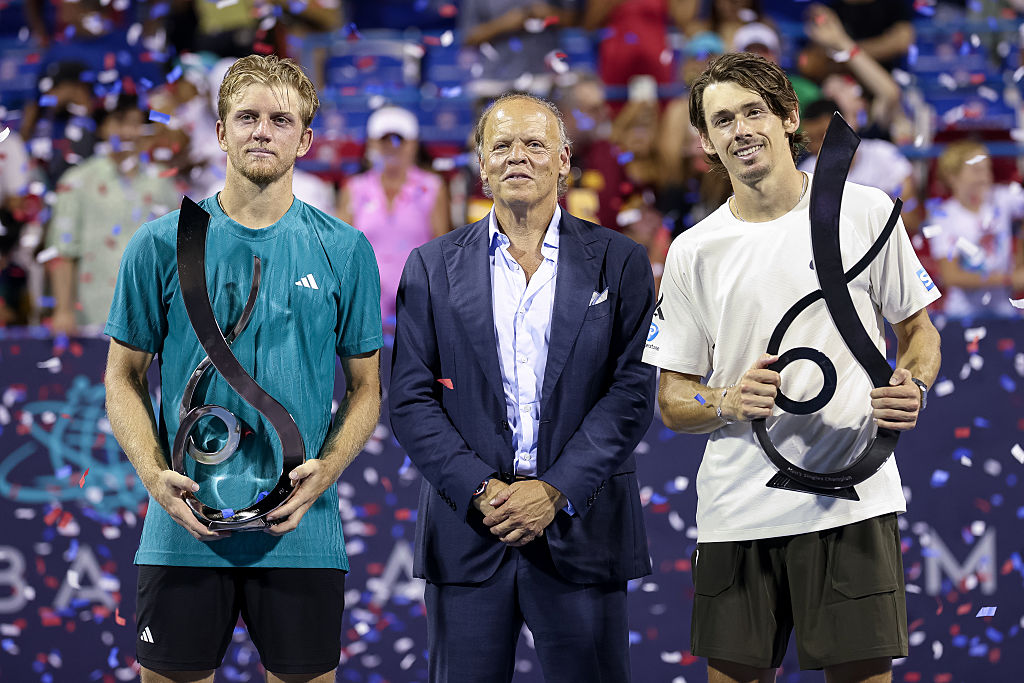 Alejandro Davidovich Fokina e Alex De Minaur durante la cerimonia di premiazione all'ATP 500 di Washington (Getty Images)