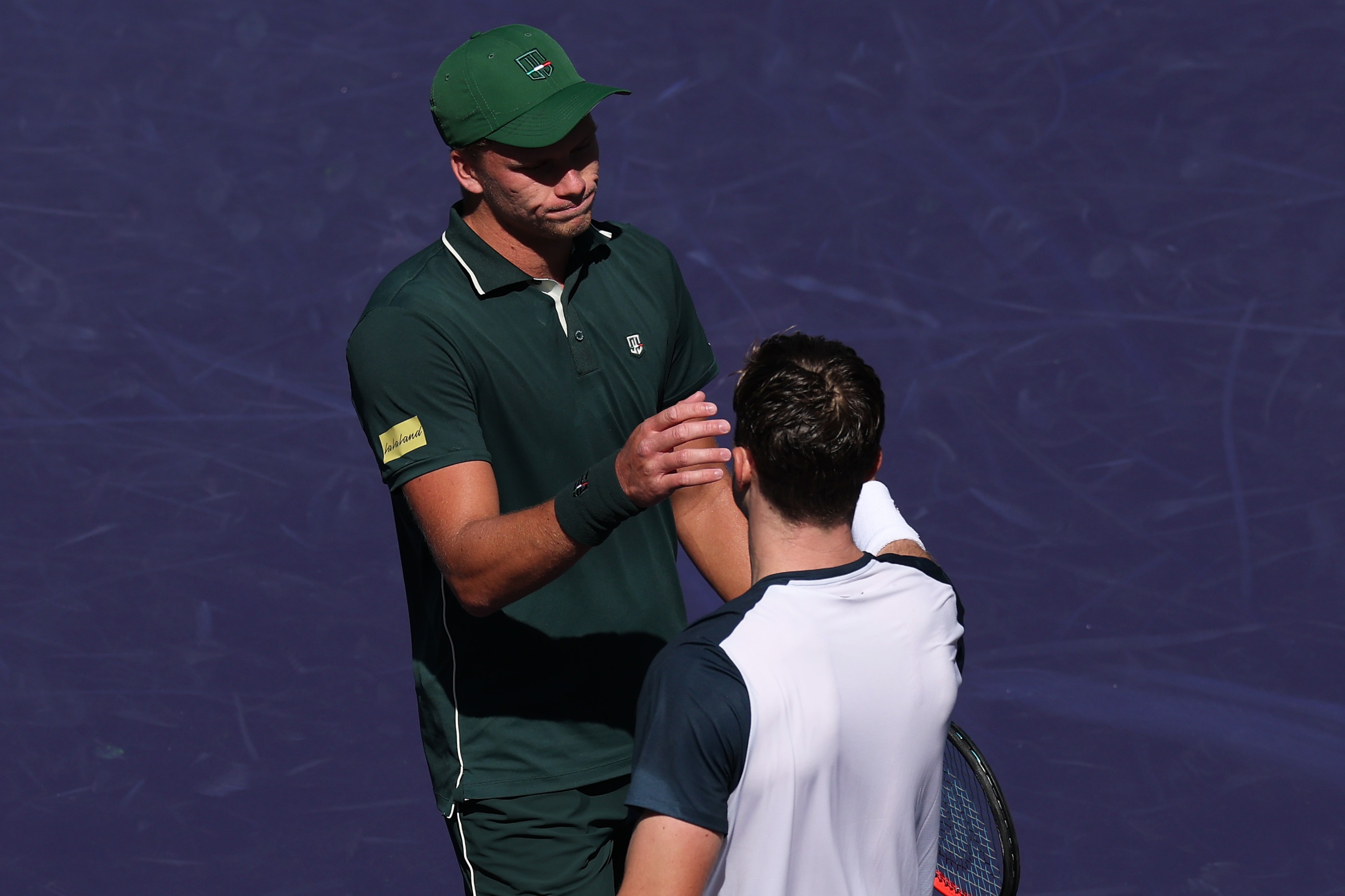 La stretta di mano tra Jenson Brooksby e Jack Draper a Indian Wells (Getty Images)