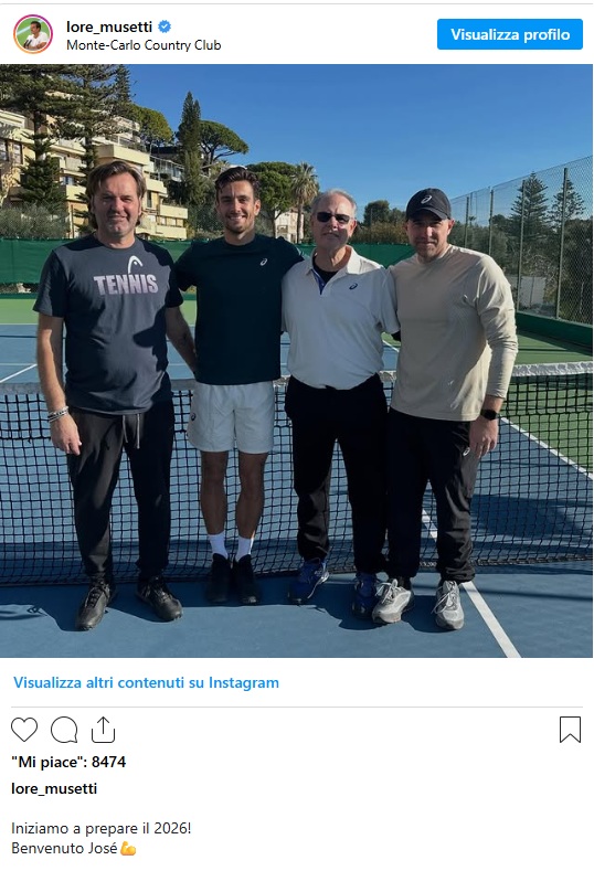 "Iniziamo a preparare il 2026! Benvenuto José". Con questo messaggio Lorenzo Musetti ufficializza il primo giorno di lavoro di José Perlas nel team. Il carrarino, che ha da poco dato il benvenuto al secondogenito Leandro, ha pubblicato il messaggio sui suoi profili social insieme a una foto di gruppo in cui è insieme al coach Simone Tartarini e al preparatore Damiano Fiorucci.
