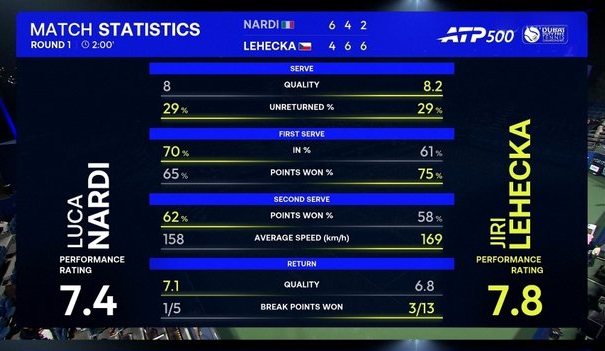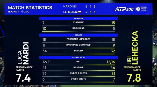 Il match. In quello che è il loro primo confronto è Nardi a provocare il primo scossone del set d’apertura, con la complicità di Lehecka che commette doppio fallo sulla prima palla-break della partita (3-2). Con il suo primo ace Luca conferma il vantaggio (4-2). Nel decimo gioco con un rovescio lungolinea il marchigiano si procura un set-point e poi con una prima di servizio esterna, sulla quale il ceco sotterra in rete la risposta, incamera il 6-4.