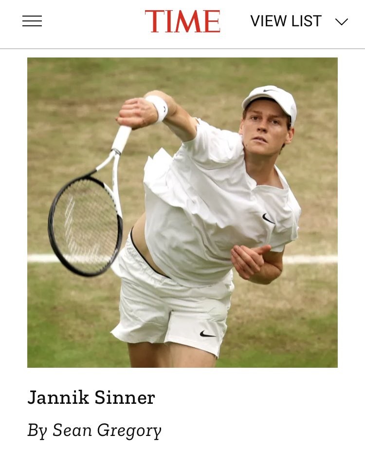 Sinner è l'unico italiano nella lista "Time 100 Next 2024" e il secondo italiano premiato in questi elenchi dalla rivista USA