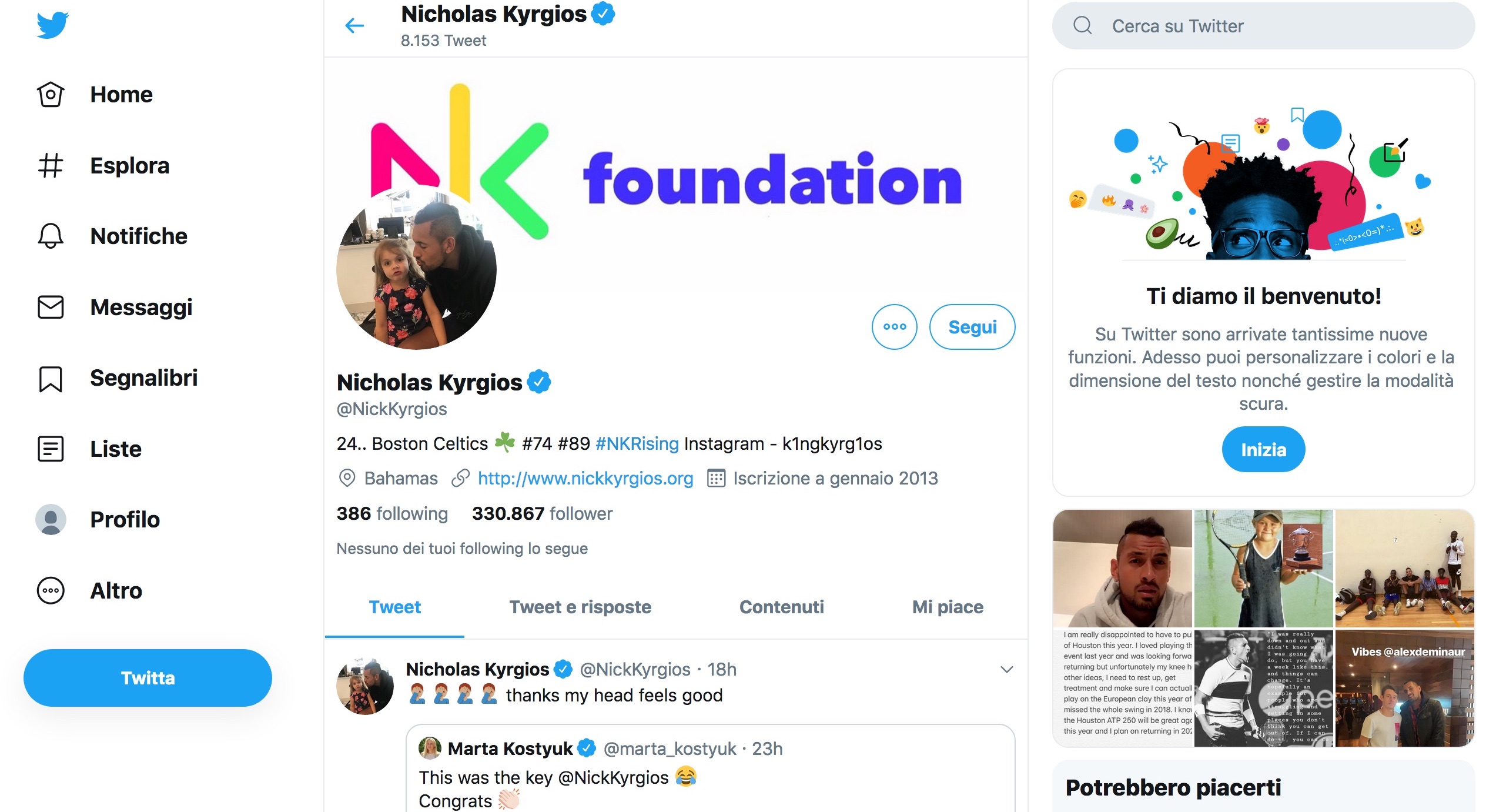 Con lui non ci si annoia mai. Nemmeno on line. Nick Kyrgios, in rete, vive tra Facebook, Instagram e Twitter, e non manca di punzecchiare i colleghi. Voi da che parte state, con chi lo ama o con chi non lo sopporta?