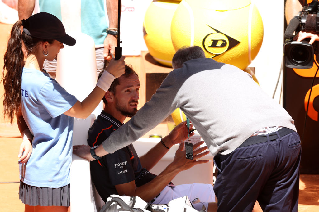 Ci è voluto l'intervento di un supervisor del Masters 1000 madrileño per calmare, nella pausa tra primo e secondo set, l'ira del moscovita che, abituato a giocare sul campo centrale della Caja Magica intitolato a Manolo Santana, si è ritrovato con poco spazio oltre la linea di fondo per rispondere come suo solito da diversi metri di profondità.