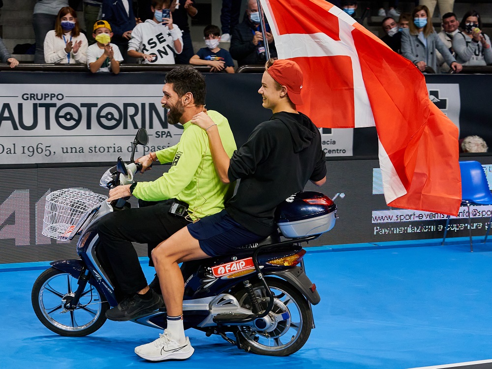 Holger Rune durante il tradizionale giro in motorino riservato al vincitore a Bergamo (foto Milesi)