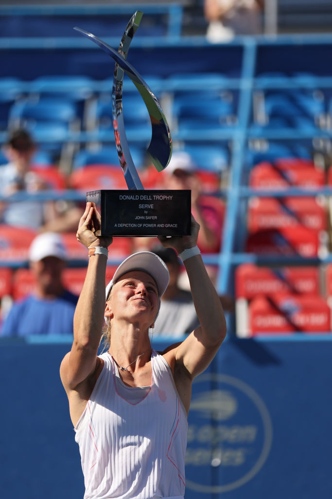 A Washington, D.C. quell'equilibrio l'ha portata a firmare la seconda vittoria in carriera su una Top 10, contro la britannica Emma raducanu che inizierà il WTA di Toronto contro Camila Giorgi e in poche settimane difenderà i 2000 punti del titolo allo US Open 2021. Poi in semifinale ha dominato la lucky loser Wang Xiyu 61 61 e in finale ha cancellato il sogno della 37enne estine Kanepi di vincere il suo quinto titolo in carriera, il primo da Bruxelles 2013.