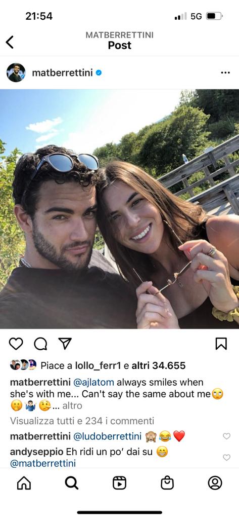 Sul profilo di Matteo, insieme, si trovano ancora alcuni scatti che documentano momenti di una love story iniziata nel 2019.