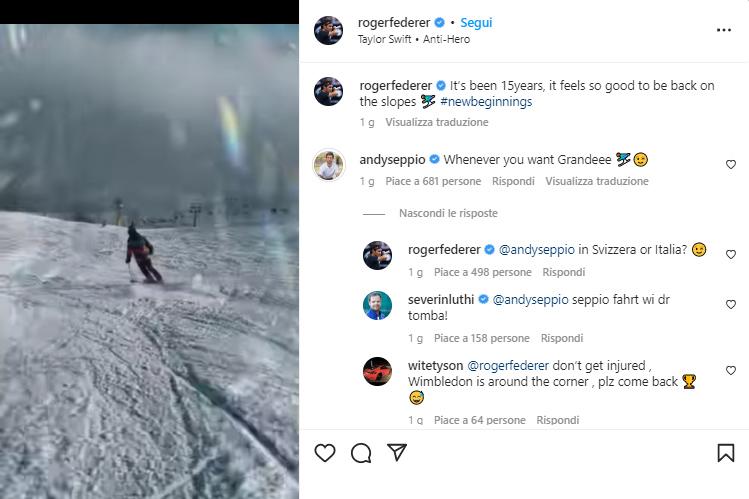 Visti dai social: Roger sugli sci e Djokovic cuore di mamma