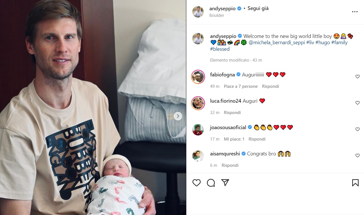 Andreas Seppi ha annunciato con un post su Instagram la nascita del secondogenito Hugo. Fabio Fognini e Simone Bolelli sono tra i primi ad avergli fatto gli auguri