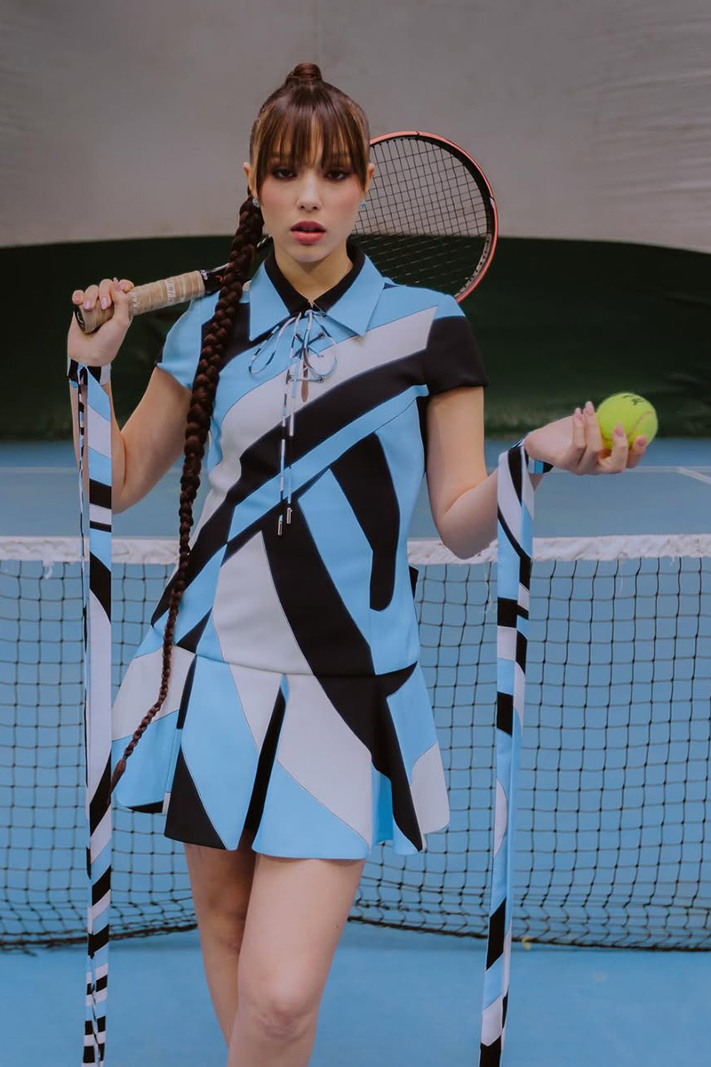 I trascorsi di Toscano nel mondo del tennis hanno inciso sulla scelta dell’outfit per la serata inaugurale, una gonnellina a pieghe e un bustier a polo ispirati agli anni ’60, ed è proprio sui campi che la cantante ha svolto lo shooting fotografico pre-Festival, ricordando a tutti il suo passato da ottima giocatrice di seconda categoria. Arrivata come “best” a 2.7 nella classifica italiana a inizio 2021, ora è retrocessa a 3.1, costretta dai numerosi impegni lavorativi a rallentare i propri ritmi: “Prima giocavo regolarmente, poi a causa della partecipazione ad Amici ho dovuto ridurre il numero degli allenamenti. Ma l’amore per questo sport resta, tant’è che per la prima serata il tennis è stato d’ispirazione per la scelta dell’abito da indossare. È una disciplina che amo perché aiuta tantissimo ad affrontare la vita di tutti i giorni: il tennis mi manca”, ha affermato in conferenza stampa.
