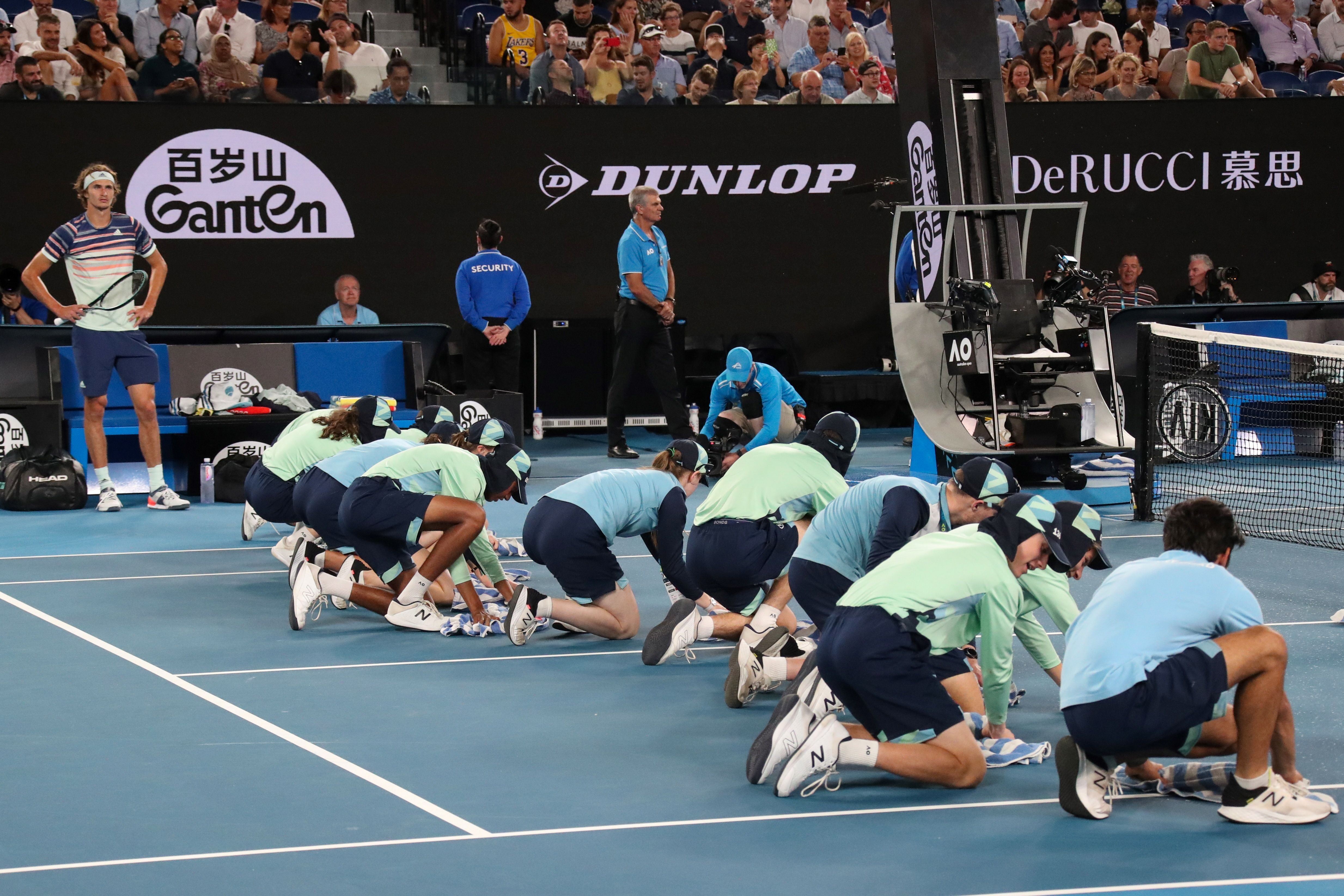 Nonostante il meteo schizofrenico, alle 19.30 Dominic Thiem e Sascha Zverev scendevano regolarmente in campo, col tetto della Rod Laver arena chiuso per 4/5, o aperto per un 1/5. Poi chiuso del tutto ad inizio terzo set, quando effettivamente cadeva un po’ di pioggia mista a polvere. E se la sospensione durava 10 minuti stavolta non dipendeva dal motore della copertura ma dal tedesco, che lamentava il malfunzionamento di alcuni faretti.