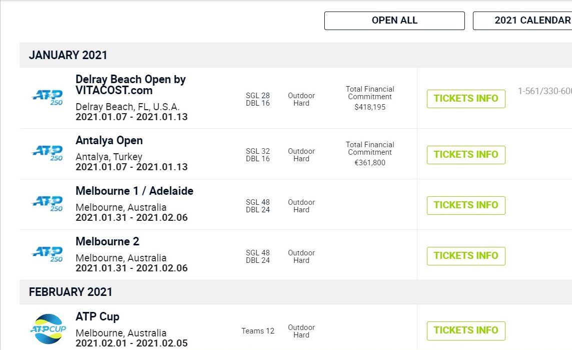 Per il circuito ATP l'anno nuovo comincia il 5 gennaio, quando andranno in scena le prime partite delle qualificazioni dei tornei di Delray Beach e Antalya
