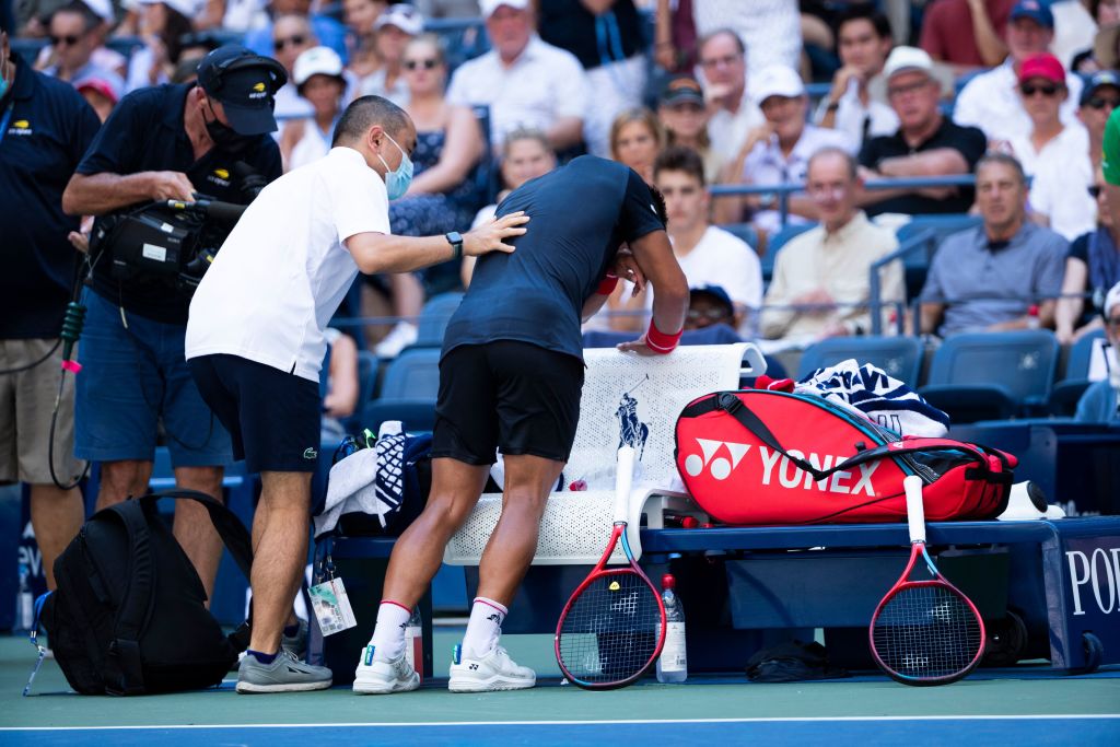 Il loro secondo confronto diretto, che ha aperto il programma della seconda giornata dello US Open sull'Arthur Ashe Stadium, il centrale di Flushing Meadows, per due set non ha tradito affatto le attese. Poi Baez, con le mani sulle ginocchia e a lungo impossibilitato a muoversi, è stato costretto a ritirarsi quando era sotto 75 75 20. Secondo l'ATP, che lo scrive nella versione spagnola del sito, ha avuto un problema al gemello destro.