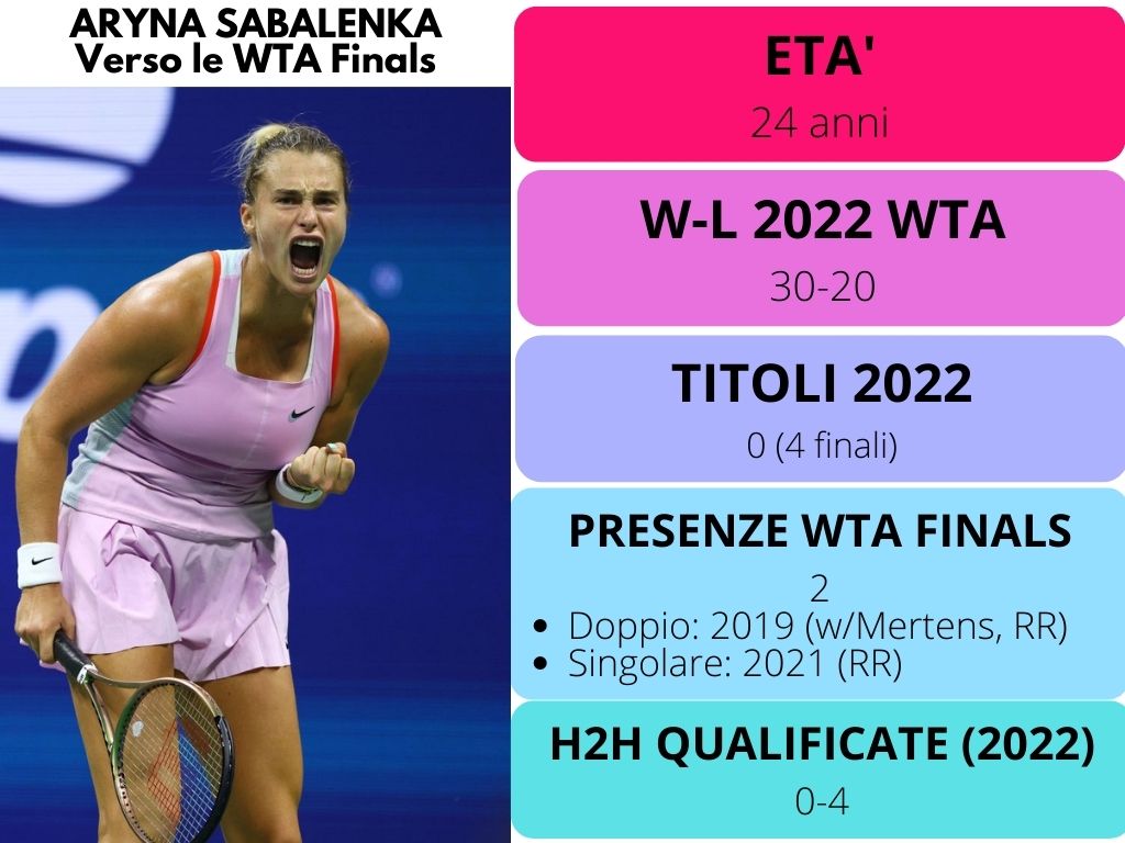 Aryna Sabalenka alle WTA Finals 2022, la scheda: numeri e curiosità