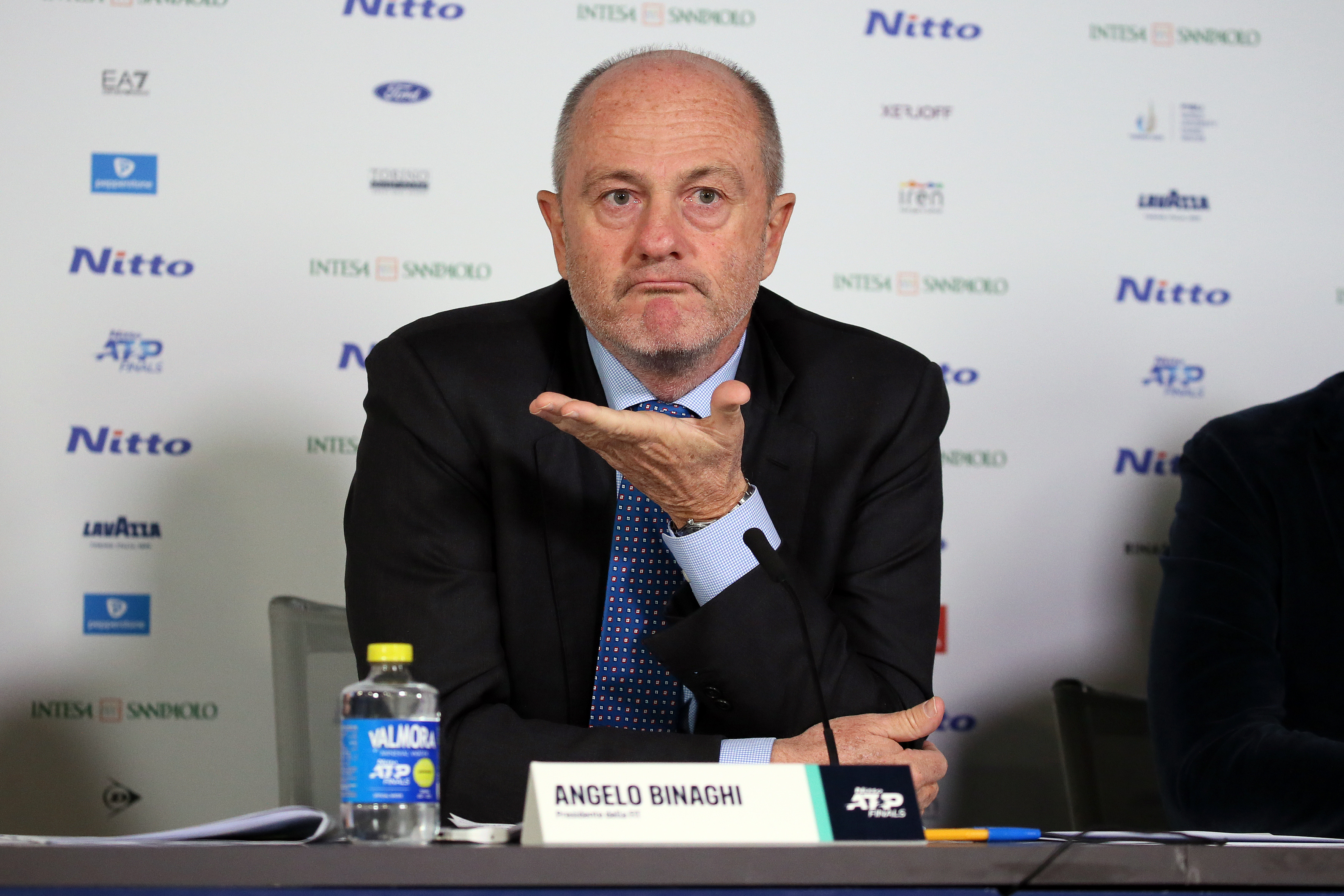 Il presidente della Federazione Italiana Tennis e Padel, Angelo Binaghi, durante la conferenza stampa conclusiva delle Nitto ATP Finals (Foto Sposito)