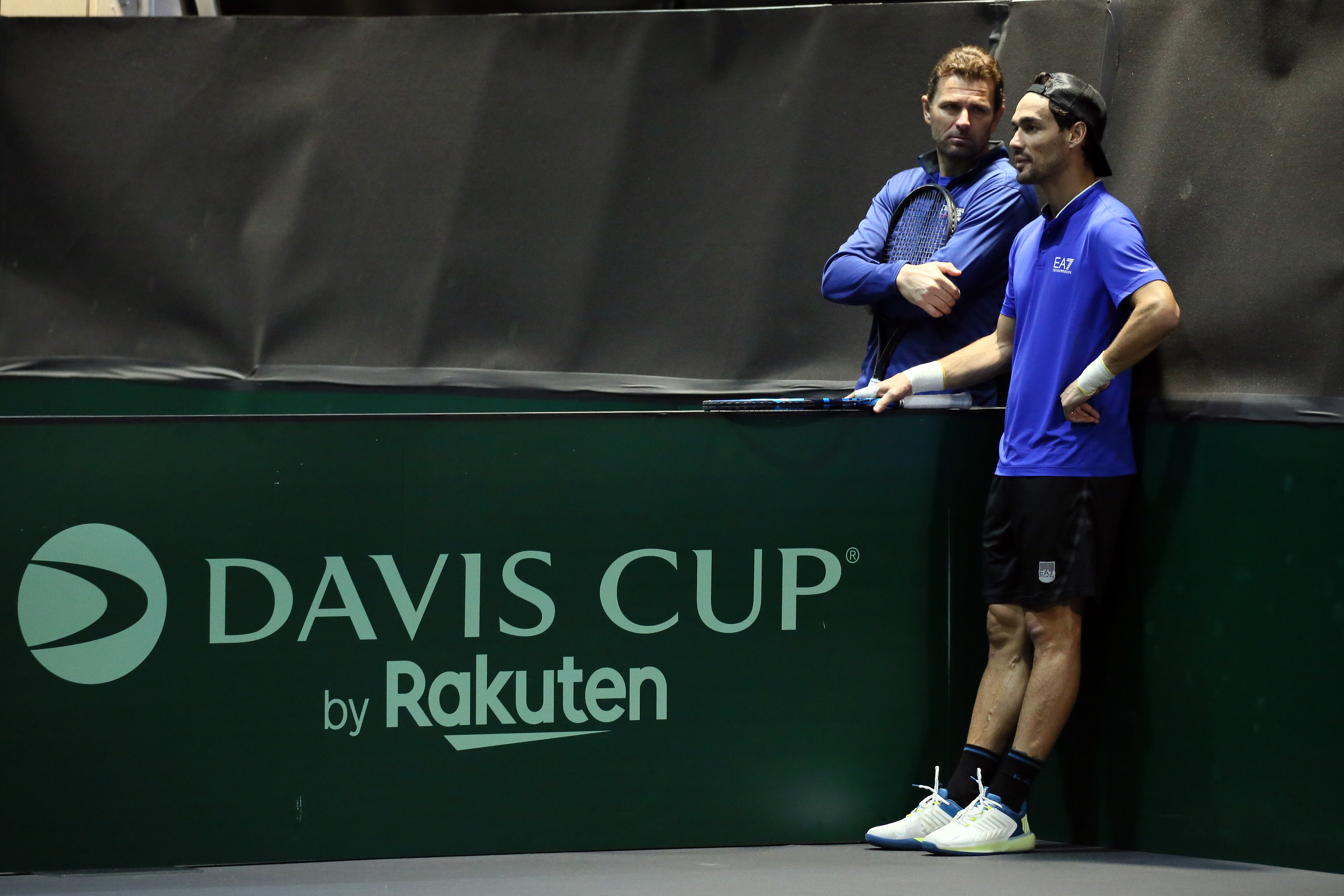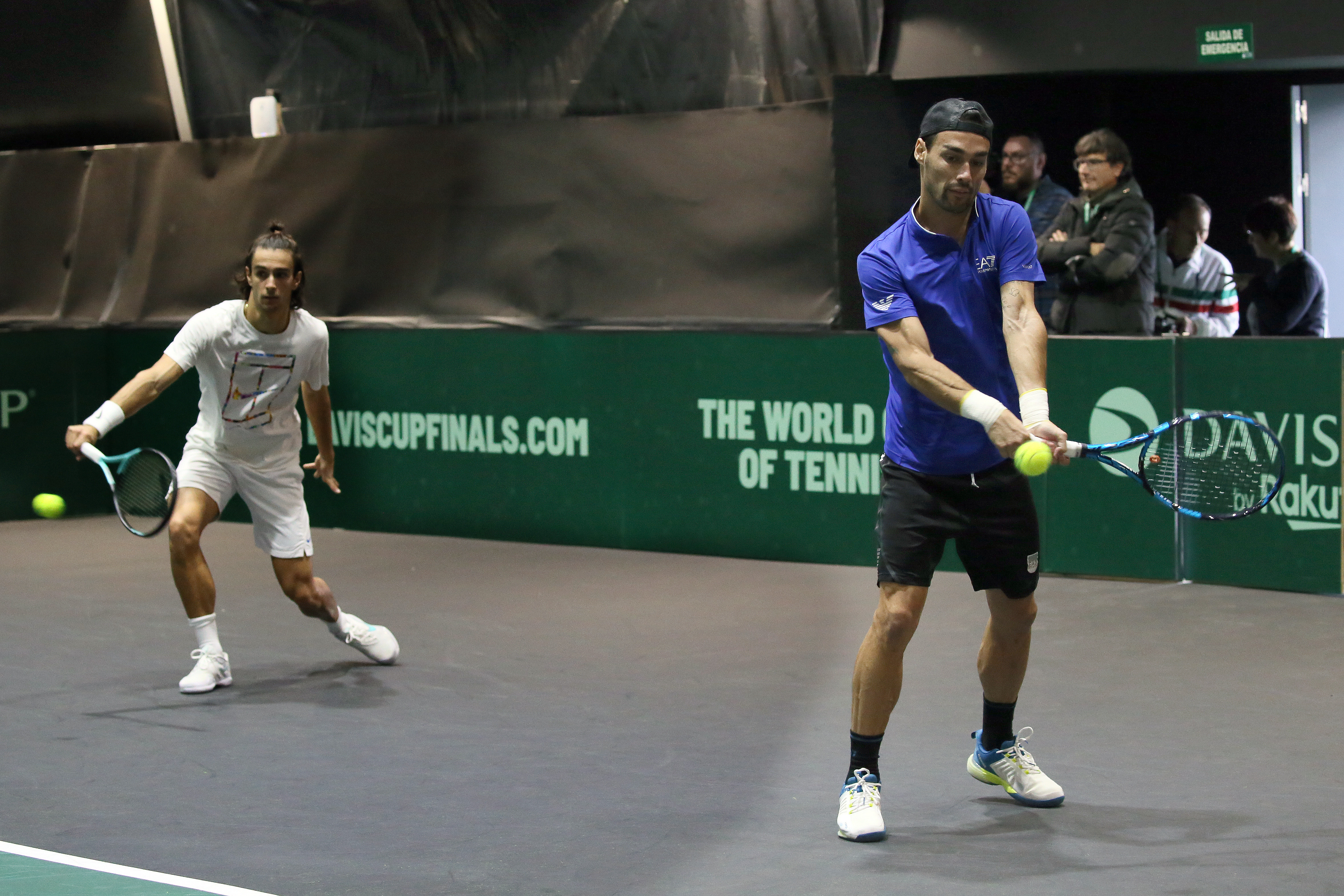 Fabio Fognini e Lorenzo Musetti in allenamento in Coppa Davis a Malaga (Foto Sposito)