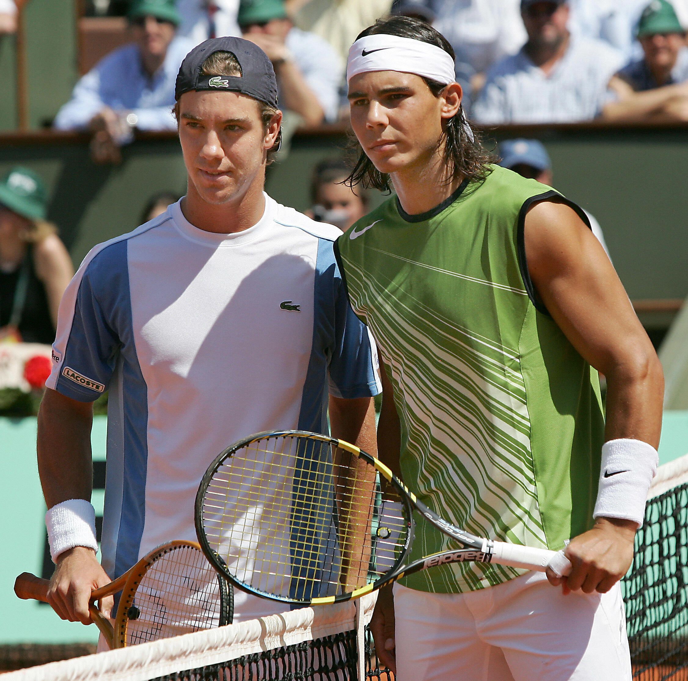 Nel 2003, in un torneo Challenger a Saint-Jean-de-Luz, il talento tennistico naturale ebbe ancora la meglio sull’atleta simbolo, non solo del tennis ma di tutto lo sport, nei confronti del quale aveva all’inizio un vantaggio psicologico: 6-2 e ritiro. Ma, già nel 2004, nel primo confronto da pro, era lo spagnolo ad imporsi, all’Estoril, di testa, di volontà, di cuore, lasciando un set per strada perché si trascinava dietro una gamba per una frattura da stress.