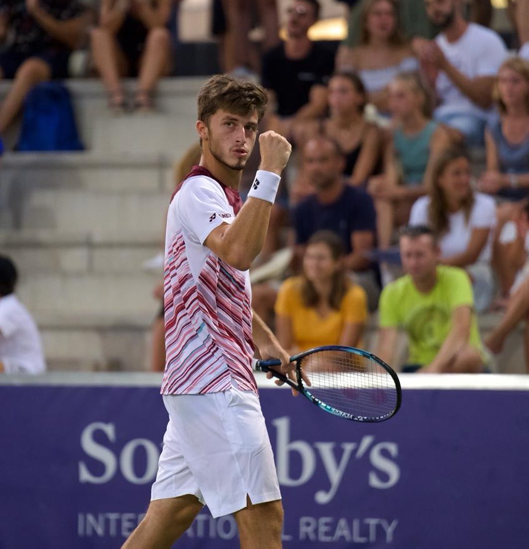 Il 19enne pesarese, n.151 ATP e settima testa di serie delle “quali”, dopo aver sconfitto all’esordio il serbo Hamad Medjedovic, n.255 del ranking, in tabellone grazie ad una wild card, nel turno decisivo ha battuto in rimonta 36 76(3) 76(2), dopo una battaglia di quasi tre ore, il belga David Goffin, n.65 ATP, prima testa di serie delle qualificazioni. Il Next Gen marchigiano ha annullato all’ex n.7 del mondo ben tre match-point nel dodicesimo gioco del secondo set.
