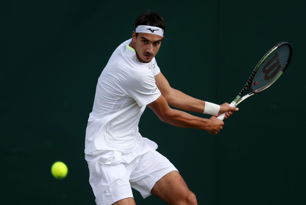 Lorenzo Sonego colpisce di rovescio (foto Getty Images)