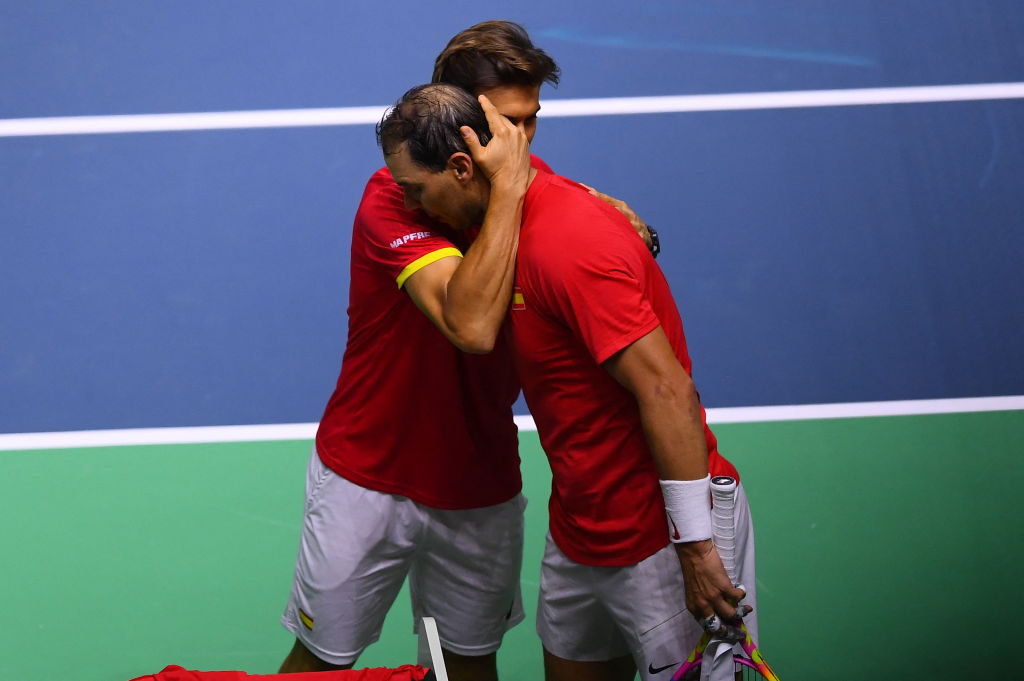 David Ferrer abbraccia Rafa Nadal (foto Getty Images)