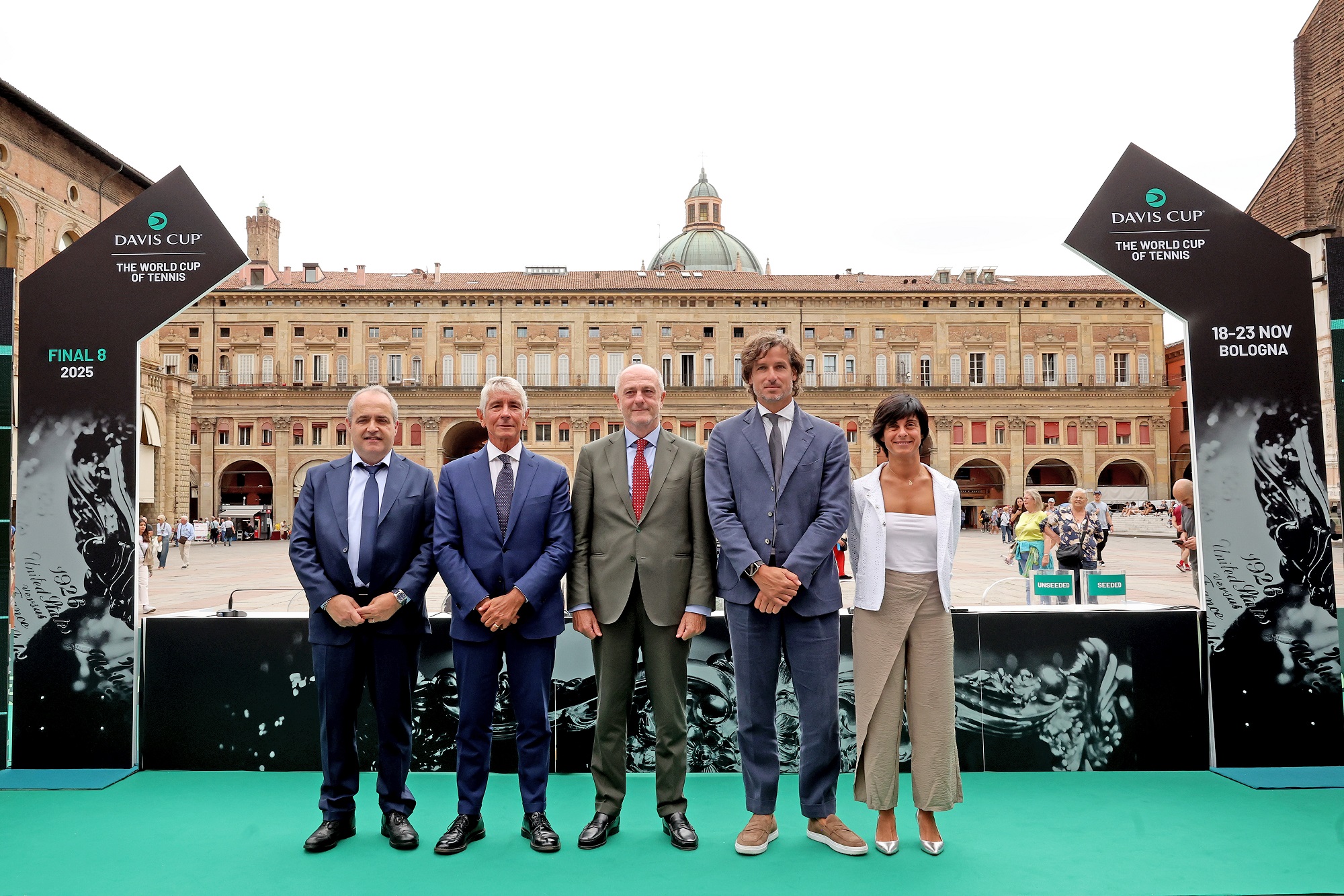 Questa mattina, presso Piazza Maggiore a Bologna, si è tenuto il primo atto ufficiale dell’evento: alla presenza del Presidente della FITP (Federazione Italiana Tennis e Padel) Angelo Binaghi, del Ministro per lo Sport e i Giovani Andrea Abodi, del Direttore del Torneo Feliciano Lopez, del Coordinatore delle Politiche Sportive della Regione Emilia-Romagna Giammaria Manghi, dell’Assessora allo Sport e al Bilancio del Comune Bologna Roberta Li Calzi, e del Referee Riccardo Ragazzini è stato effettuato il sorteggio della fase finale che vede impegnate le otto migliori nazionali del mondo.
