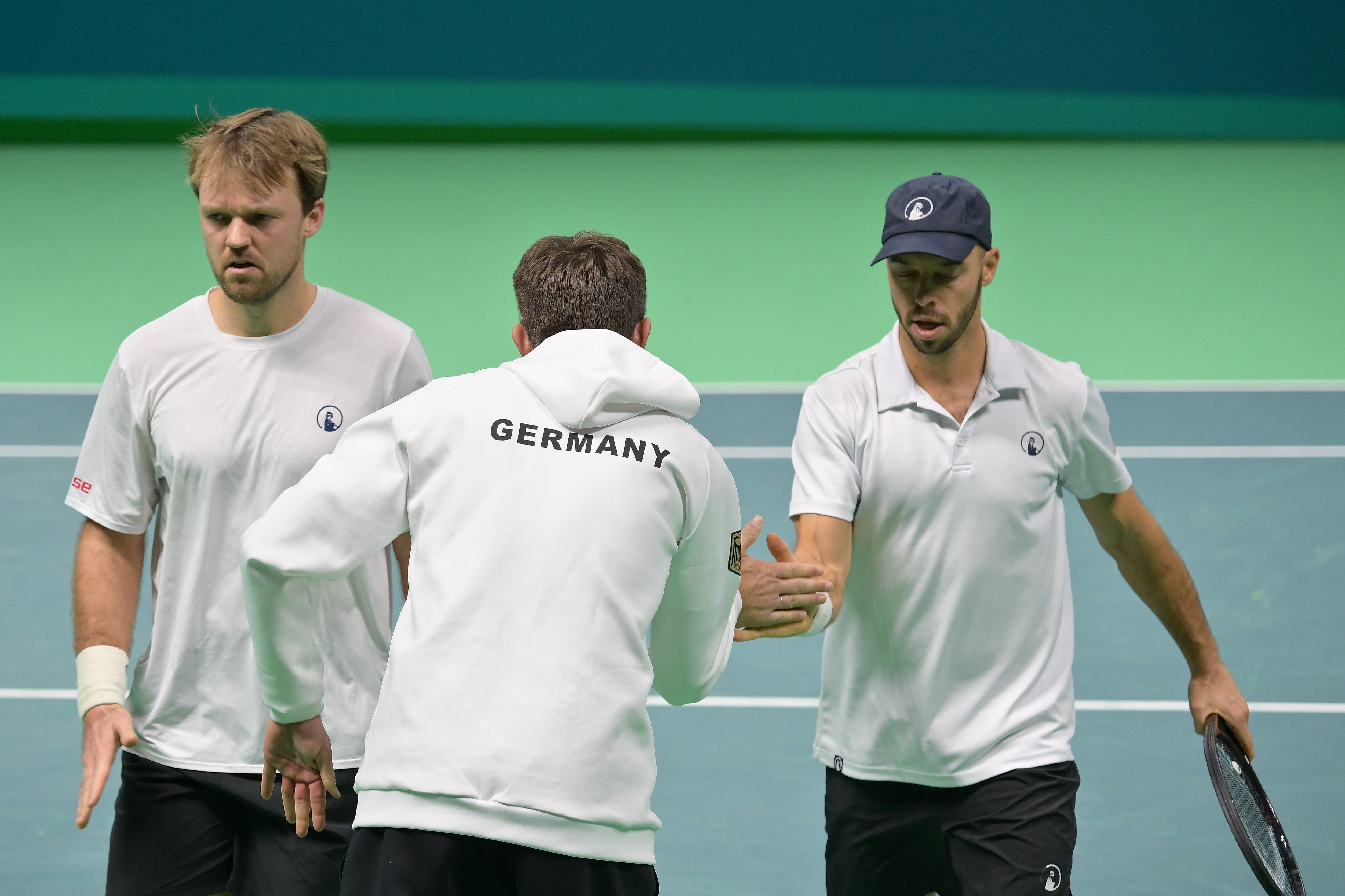 Coppa Davis, Kevin Krawietz e Tim Puetz festeggiano con il capitano Mikhael Kohlmann (Foto FITP)