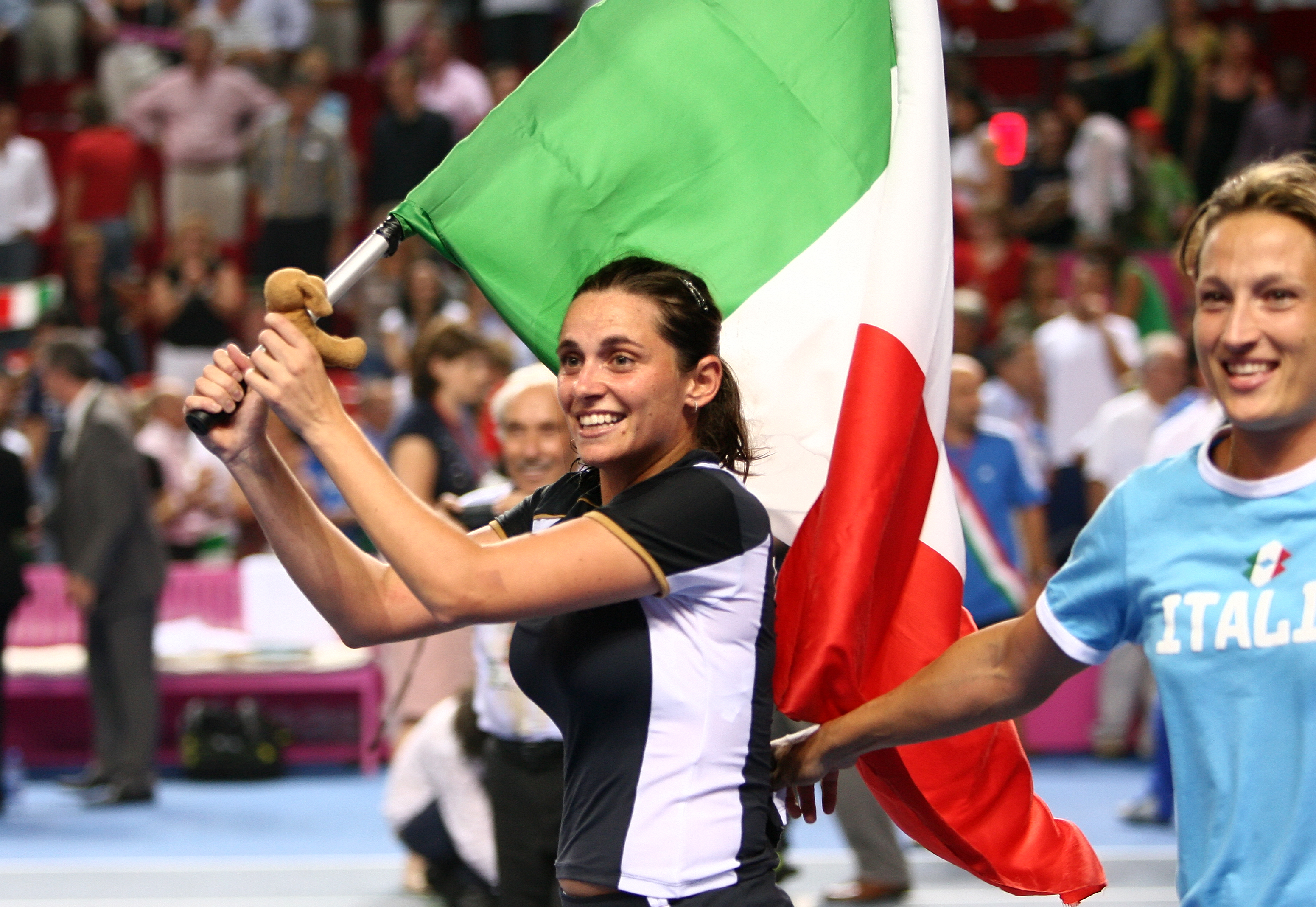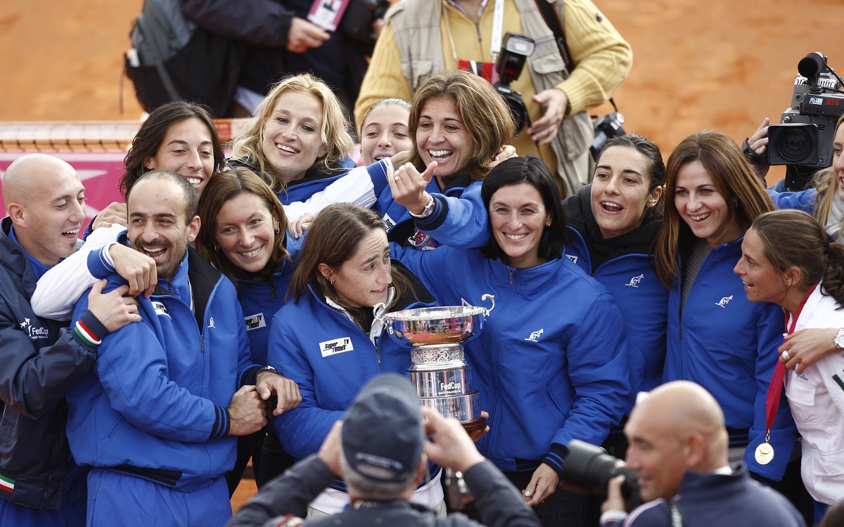 La festa dell'Italia per il trionfo in Billie Jean King Cup nel 2009 (Foto FITP)