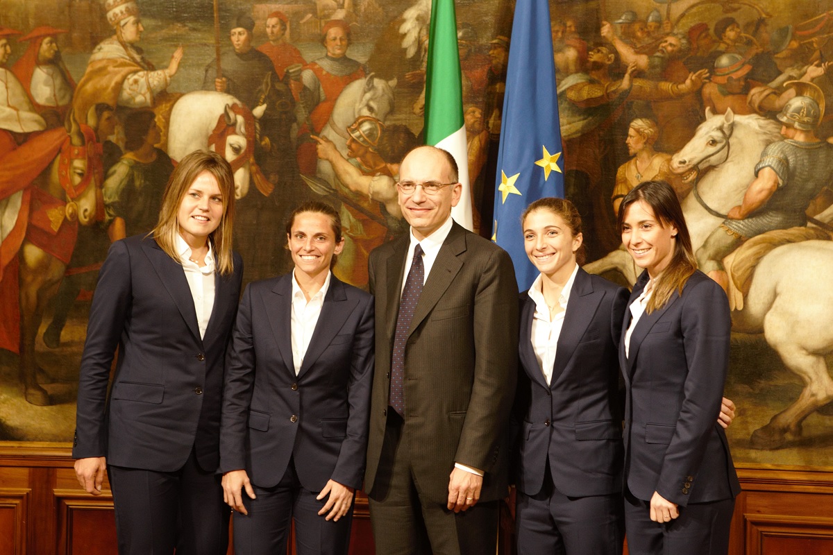 La Nazionale di Billie Jean King Cup, allora Fed Cup, ricevuta dal Presidente del Consiglio Enrico Letta a Palazzo Chigi dopo il trionfo del 2013 (Foto Costantini/FITP).