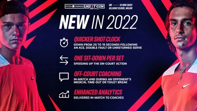 A Milano si sono visti anche i supporti per gli asciugamani, in passato portati dai raccattapalle ai giocatori, lo shot clock per misurare il tempo tra un punto e l'altro. Inoltre dalle Intesa Sanpaolo Next Gen ATP Finals è partito il percorso che ha portato all'introduzione del coaching nel tennis maschile. Se oggi gli allenatori possono parlare con i giocatori durante le partite lo si deve anche alle sperimentazioni delle passate edizioni del torneo di Milano quando i coach comunicavano con i tennisti ai cambi campo attraverso cuffie e microfoni, e le conversazioni si potevano ascoltare anche in tv.