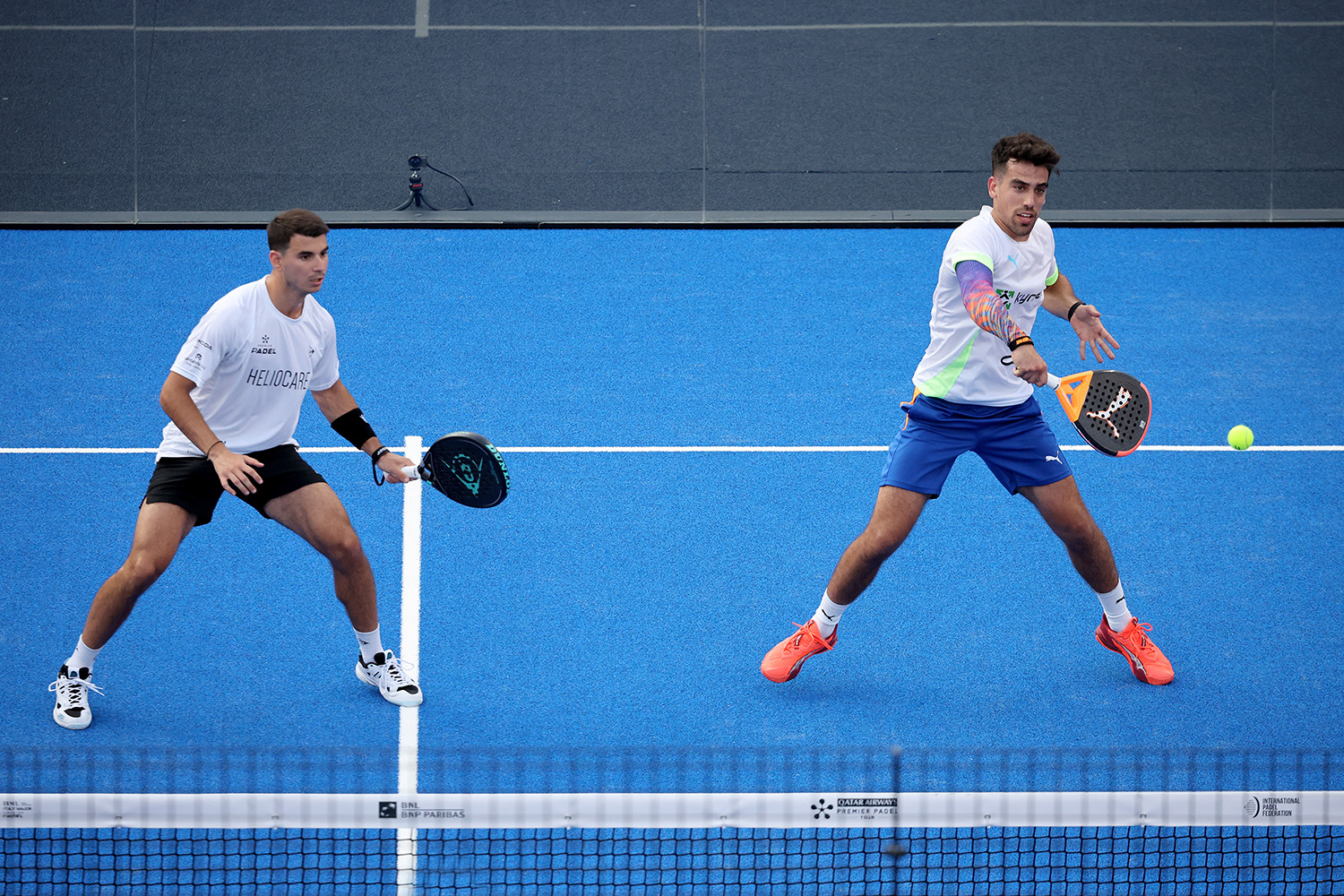 Molto nutrita la spedizione italiana in medio oriente, della quale fanno parte ben 10 dei 16 azzurri (6 uomini e 4 donne) protagonisti una settimana fa a La Línea de la Concepción, con due bronzi alla FIP Euro Padel Cup. E proprio da due di questi, Giulio Graziotti e Simone Iacovino, è già arrivata la prima vittoria italiana nella competizione. Sabato mattina, i due romani hanno superato il primo turno delle qualificazioni sui campi secondari della Rafa Nadal Academy (mentre il Centrale è stato allestito a The Arena, impianto da oltre 5.000 posti a sedere), risolvendo senza grandi difficoltà il duello contro gli spagnoli Arnaldos/Garcia, battuti per 6-4 6-1.