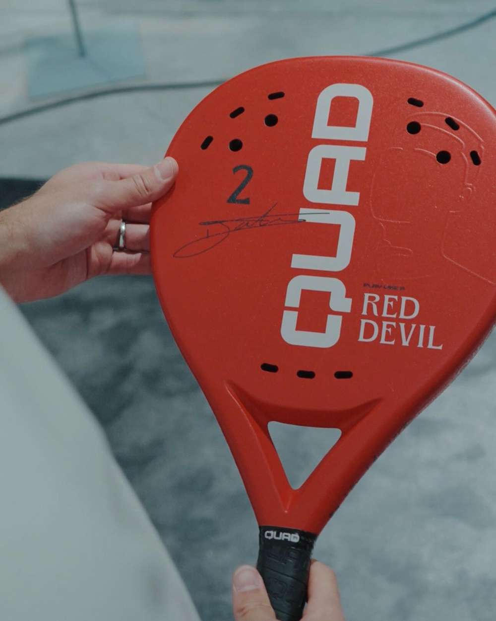 Il portoghese ha creato la racchetta grazie alla collaborazione con il marchio portoghese Quad Sports: il progetto si aggiunge alla collezione Quad Creators e riflette come il calciatore stia espandendo il proprio marchio personale verso un mercato in piena espansione. Con il nome “Red Devil”, in chiaro omaggio al club inglese in cui milita, la racchetta di Dalot riflette la sua identità calcistica: il rosso intenso caratteristico dello United domina l'estetica e il numero 2 spicca sulla parte anteriore.