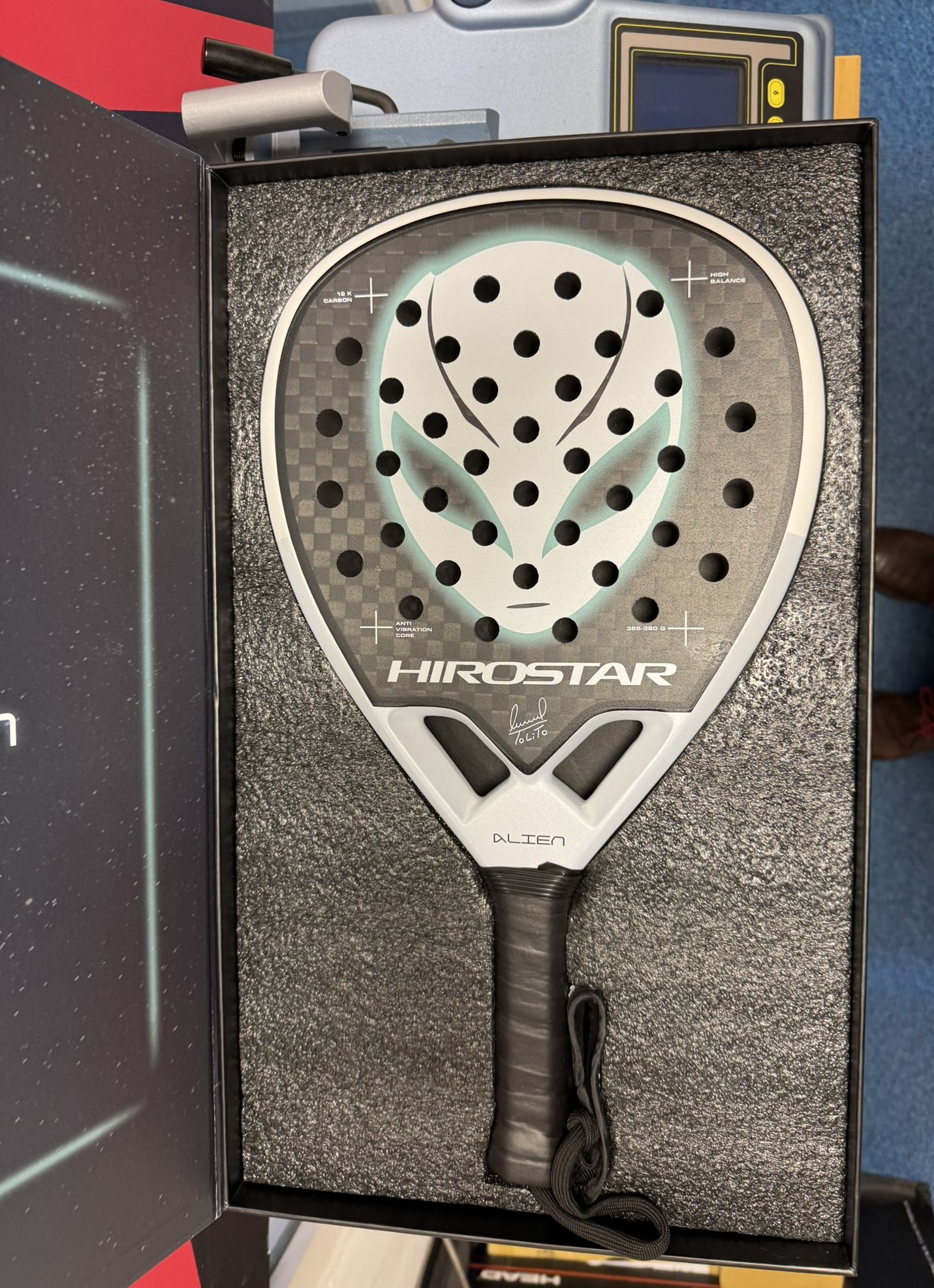 Giocare con la pala del funambolo, identificarsi non con il più forte ma con il più bravo a fare magie: per un appassionato di padel questa voglia si soddisfa andando a cercare una Hirostar Alien. Hirostar è un brand dal suono internazionale ma in realtà italianissimo, con sede a Milano. Alien, l’alieno, è il nome del modello dedicato a lui, Leonel Daniel Aguirre, per tutti i padelisti del mondo semplicemente: “Tolito”.