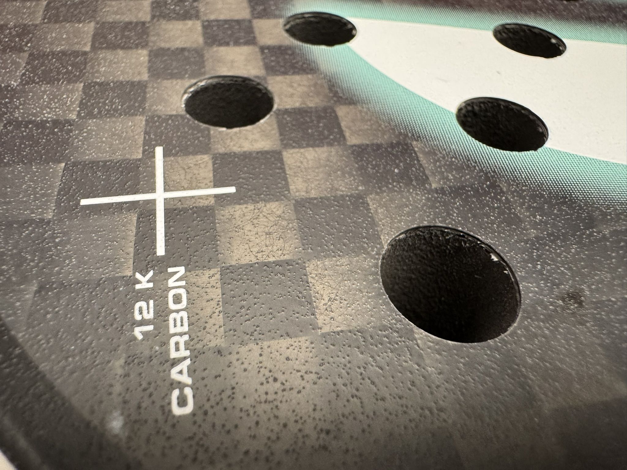Alien, che abbiamo sottoposto al nostro test, ha il nucleo in Eva Black e un bilanciamento medio. La forma è identica, a diamante, ideale per il gioco d’attacco. La superficie d’impatto, con finitura sabbiata, è sempre in carbonio 24K, quello di alta qualità.