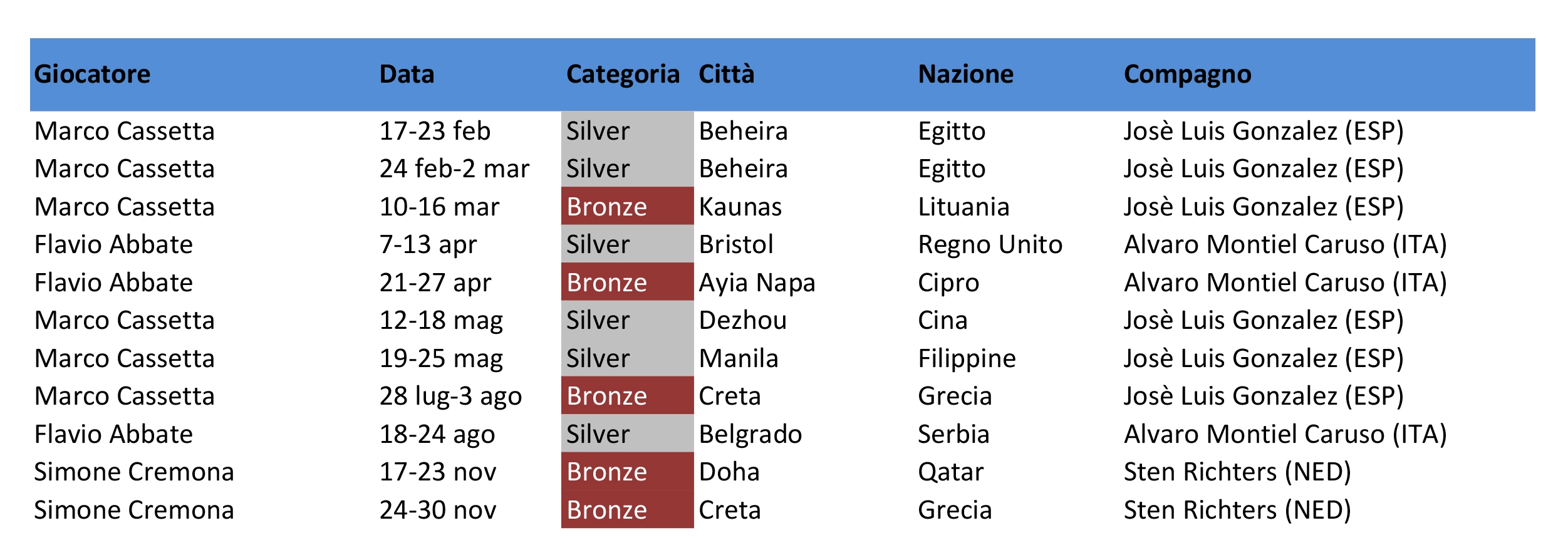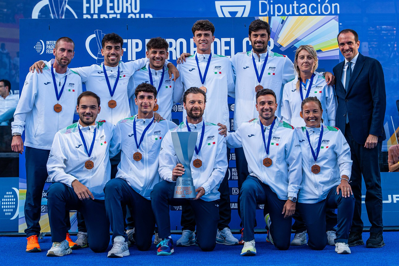 I sei giocatori già citati, uniti agli italo-argentini Alvaro Montiel Caruso e Aris Patiniotis, sono stati anche i protagonisti del bronzo vinto alla FIP Euro Padel Cup in Spagna, dove la nostra nazionale è riuscita a salire sul podio europeo per la quinta volta consecutiva. Era andata meglio nel 2024 a Cagliari (argento), ma il risultato vale ugualmente perché confermarsi diventa ogni anno più complesso, in quanto sono sempre di più i paesi a investire nel padel e a produrre ottimi giocatori.