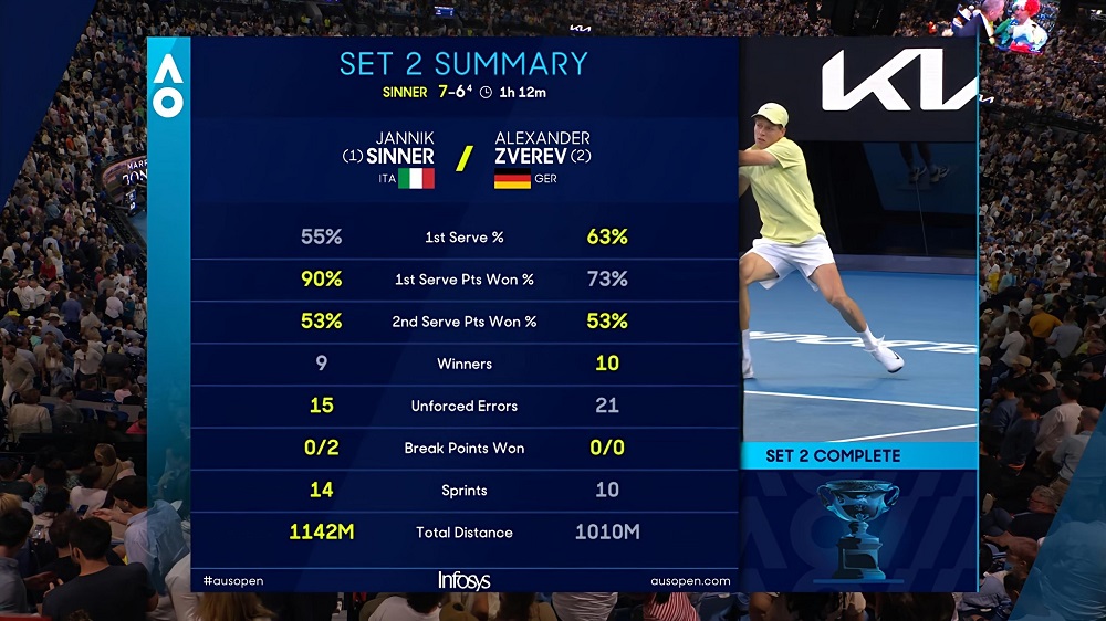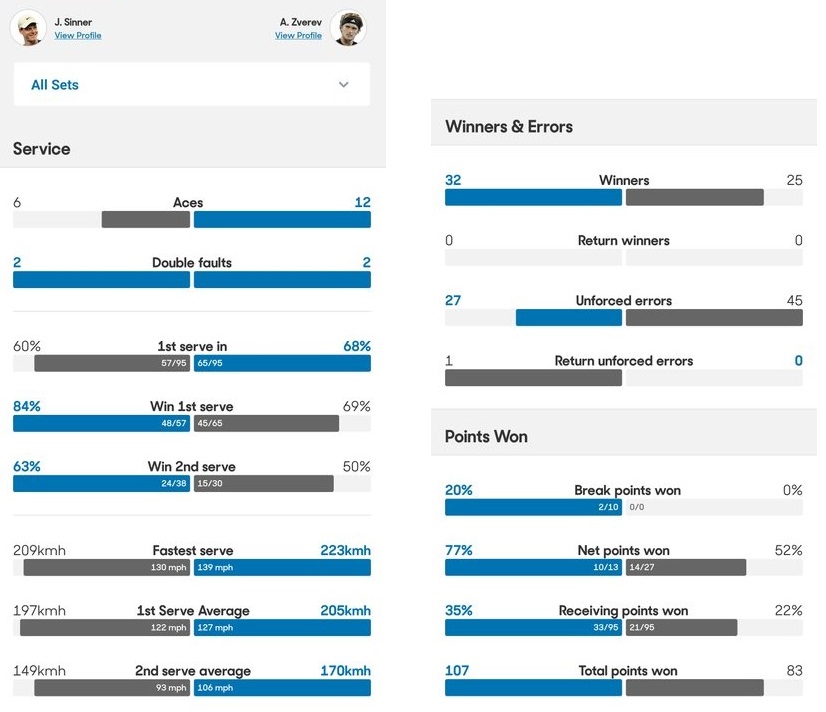 Sinner-Zverev 63 76(4) 5-2