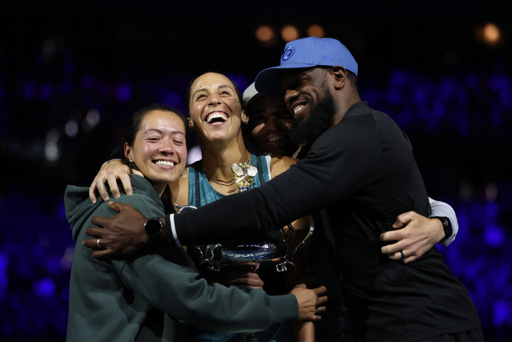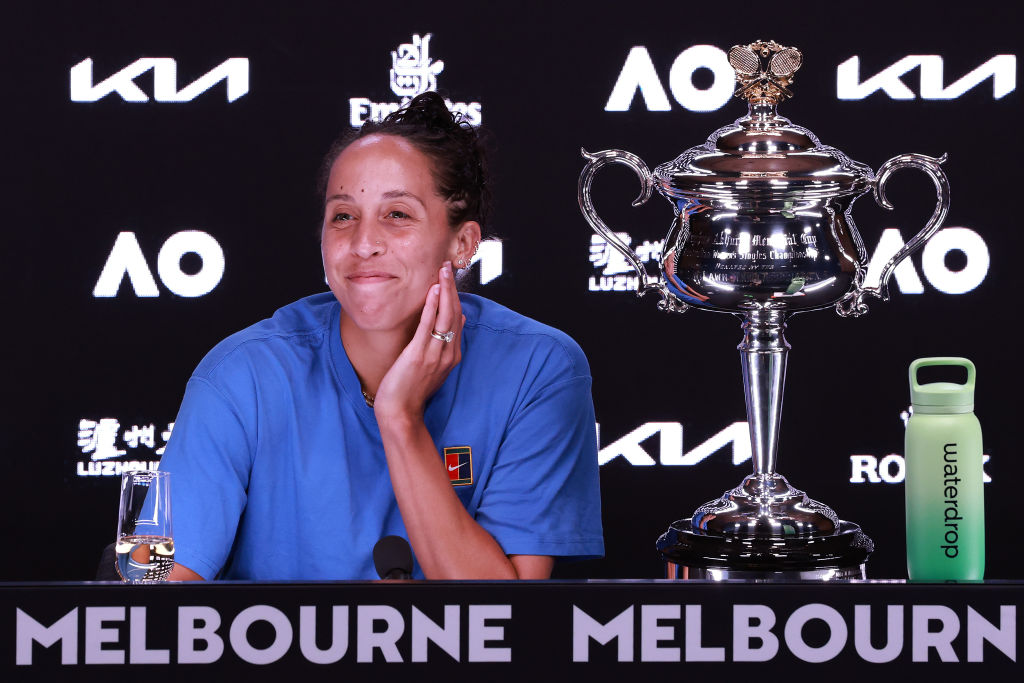 Il ritratto della gioia. Madison Keys si beve un calice di champagne, prima di cominciare il fuoco di fila delle domande. Mai così belle da ascoltare, per la nuova campionessa Slam, giunta al titolo numero 1 a quasi 30 anni.