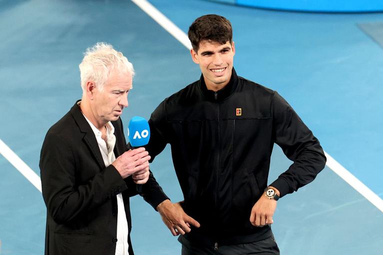“Complimenti per la canotta e per i bicipiti”, gli dice l’australiano, mentre Alcaraz risponde a tono: “La indosso per spaventare l’avversario”. Poi una riflessione sul fatto che 30 teste di serie su 32 nel tabellone maschile hanno centrato il secondo turno. “In questo momento ci sono grandi giocatori, ma le partite sono sempre difficili. Ho visto che molti hanno faticato a vincere, riuscendoci al quinto set, giocando partite combattute. Spesso i pronostici sono aperti, perché le partite sono sempre equilibrate e ci sono tanti giocatori che possono battere chiunque”. Carlitos riflette anche sul cambiamento degli Australian Open, con il primo turno spalmato su 3 giorni. “Penso che sia meglio per i giocatori e in definitiva per tutti. Per il pubblico, perché possa avere più giorni per vedere le partite, e pure per il torneo stesso. I giocatori inoltre hanno qualche momento in più per riposare. La controindicazione? I giocatori che giocano il primo giorno possono avere qualche vantaggio, avendo due giorni di riposo. Però, a parte questo, penso sia un ottimo format”.