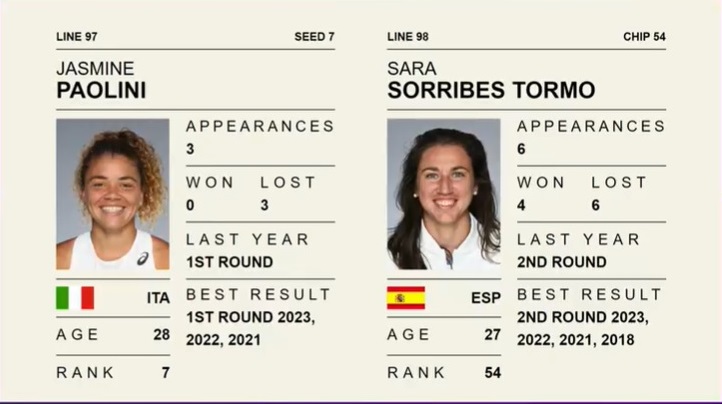 Obiettivo prima vittoria in main draw per Paolini, che nelle sei partecipazioni precedenti - le prime tre nel tabellone delle qualificazioni, le ultime tre nel tabellone principale - ha vinto solo la prima partita disputata nelle “quali” a Roehampton nel 2017. Dopo la sconfitta in due set contro la tedesca Petkovic nel 2021, per la tennista seguita da coach Renzo Furlan sono arrivate le due al terzo set contro la ceca Kvitova (campionessa a Wimbledon nel 2011 e 2014): per fortuna di “Jas” quest’anno Petra è in maternità….