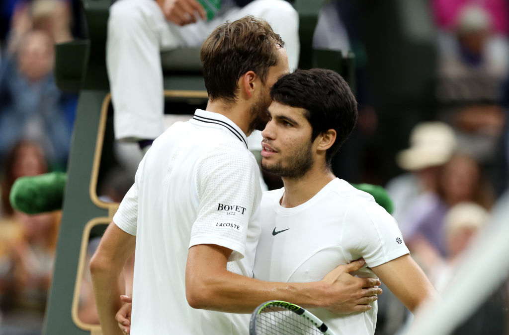 Sarà Alcaraz-Djokovic la finale della 137°edizione di Wimbledon. Lo spagnolo n.1 del mondo ha battuto 63 63 63 Daniil Medvedev e domenica sfiderà il serbo in un match che oltre al titolo metterà in palio anche la prima posizione del ranking. Dovesse essere Nole a spuntarla, la sua ottava affermazione varrebbe anche il sorpasso ai danni del murciano che, in caso di vittoria, consoliderebbe invece la sua leasdership.