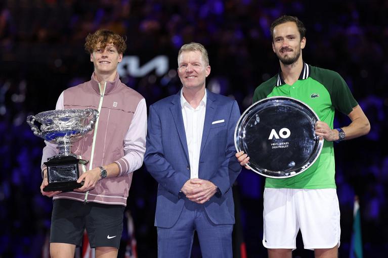 Daniil Medvedev: "Congratulazioni a Jannik. Hai dimostrato ancora una volta di aver alzato il tuo livello, ti meriti questo trofeo. Sei cresciuto, hai lottato, ci siamo sfidati in diverse finali, ne ho perse tre consecutive e cercherò di vincere la prossima, ma complimenti perché te lo sei davvero meritato".