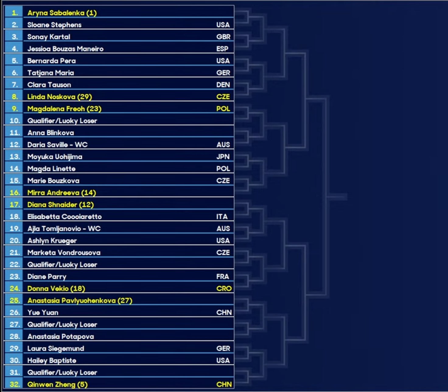 Sabalenka potrebbe poi affrontare Mirra Andreeva negli ottavi e nei quarti Zheng Qinwen che ha sconfitto l'anno scorso in finale a Melbourne.