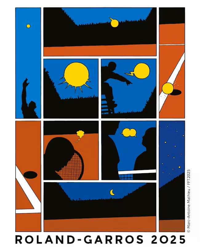Come da tradizione, anche quest'anno in coincidenza degli ultimi giorni del 2024, è stato svelato il poster ufficiale della prossima edizione del Roland Garros. E fedele a una tradizione che dura ormai dal 1980, dopo Paul Rousteau, autore del poster dell'ultima edizione, l'opera quest'anno è stata commissionata a un altro artista contemporaneo, Marc-Antoine Mathieu, vignettista e illustratore.