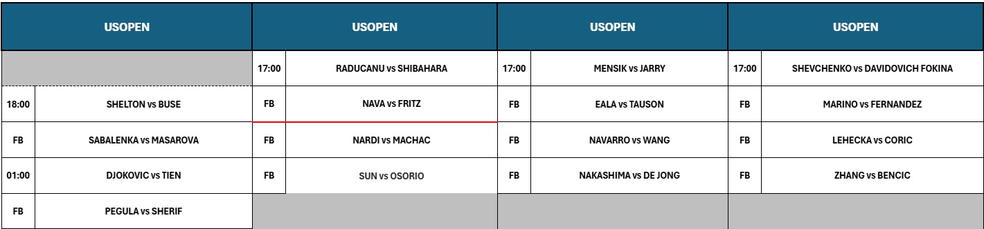 Per la prima giornata dello US Open 2025 su SuperTenniX gli appassionati potranno seguire, integralmente e senza interruzioni, tutti gli incontri in programma sui seguenti campi: