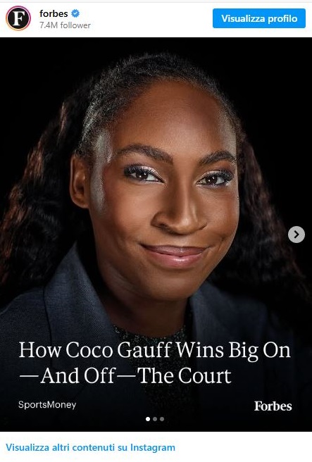 Gauff regina di denari per il 2° anno di fila secondo Forbes