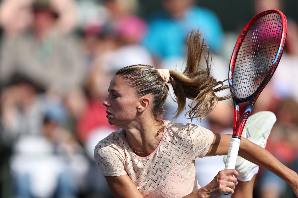 Nel WTA 1000 sul cemento californiano ha battuto in due set la polacca Frech. Nella notte italiana Errani cede contro Osaka, Trevisan battuta da Parry. La pioggia rallenta il programma. Cocciaretto deve vedersela con Stearns.