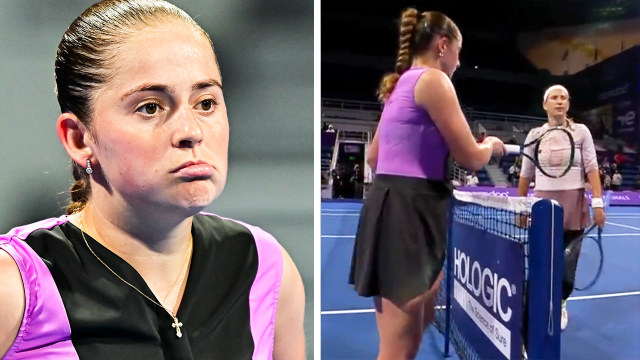 Dopo la terza sconfitta rimediata da Azarenka quest’anno, Ostapenko saluta la rivale proponendo un tocco tra racchetta invece della consueta stretta di mano. E Vika non sembra gradire il gesto…