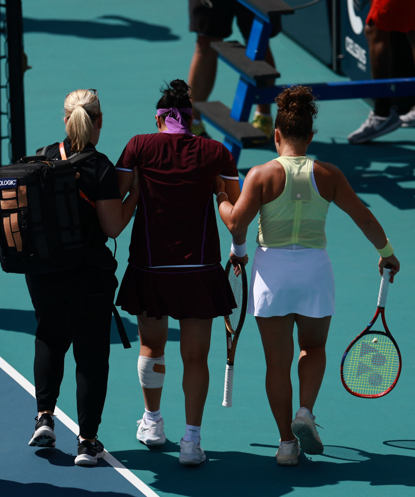 Paolini conferma il vantaggio (3-0), Jabeur muove il punteggio (3-1). Nel quinto gioco due errori di diritto costringono Paolini a concedere una palla-break, poi cancellata (4-1). Nel settimo game le palle-break per Jabeur sono due e consecutive, e stavolta la risposta di rovescio della tunisina non perdona (4-3). Proprio dopo aver colpito Ons si accascia sul campo: si rialza a fatica, chiede un “medical time out” ma non serve. E sconsolata la tunisina si ritira.